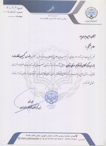 عضو گروه بازرسی مرکز وکلای قوه قضاییه تهران