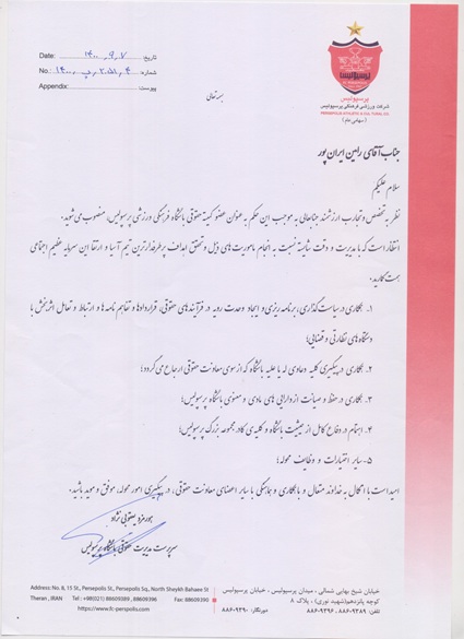عضو تیم وکلای حقوقی باشگاه پرسپولیس